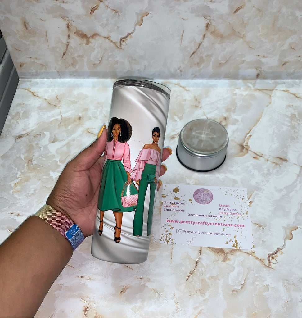 These are 20 ounce stainless steel tumblers. The vacuum seal and double wall helps keep hot liquids hot and cold liquids cold. All Tumblers have plastic sliding lids and they come with a straw. These Tumblers are Sublimated therefore no epoxy nor vinyl is used. Hand wash to preserve the stainless steel. Sublimation tumblers do not crack or peel! These are custom made items, therefore there are no returns, remakes, or exchanges unless it is our error. We cannot accept cancellations! Please be sure the shipping address is correct before purchasing. We are not responsible for any lost/missing packages due to an incorrect address.